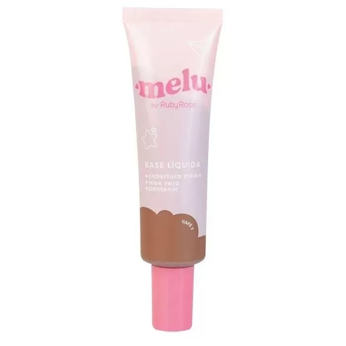 A Base Líquida Rubyrose Melu oferece uma cobertura uniforme e de longa duração, proporcionando um acabamento natural e radiante.