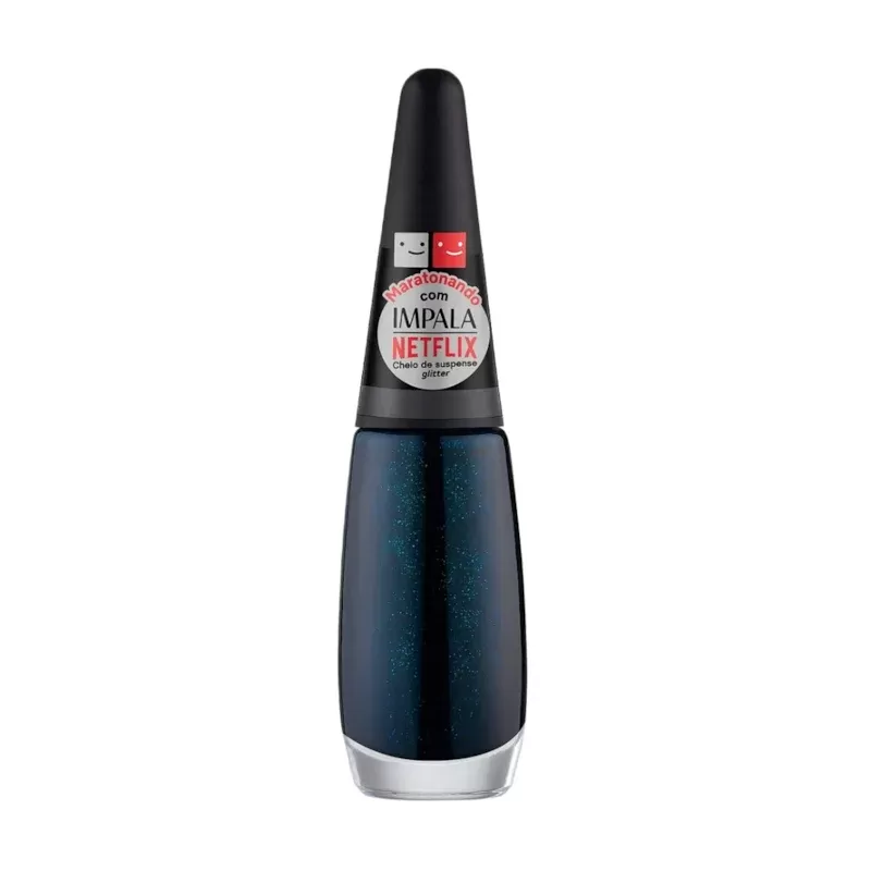 O Esmalte Impala Globoplay Maratonando Netflix Cheio de Suspense traz um tom azul profundíssimo com acabamento acetinado e toque de mistério, ideal para quem busca um visual elegante e dramático. Parte da coleção Globoplay, que homenageia séries e novelas, esse esmalte oferece cobertura de alta qualidade, secagem rápida e brilho sofisticado. Sua fórmula é hipoalergênica e vegana, garantindo conforto e segurança. O pincel anatômico proporciona aplicação uniforme e acabamento profissional, com longa duração sem descascar.