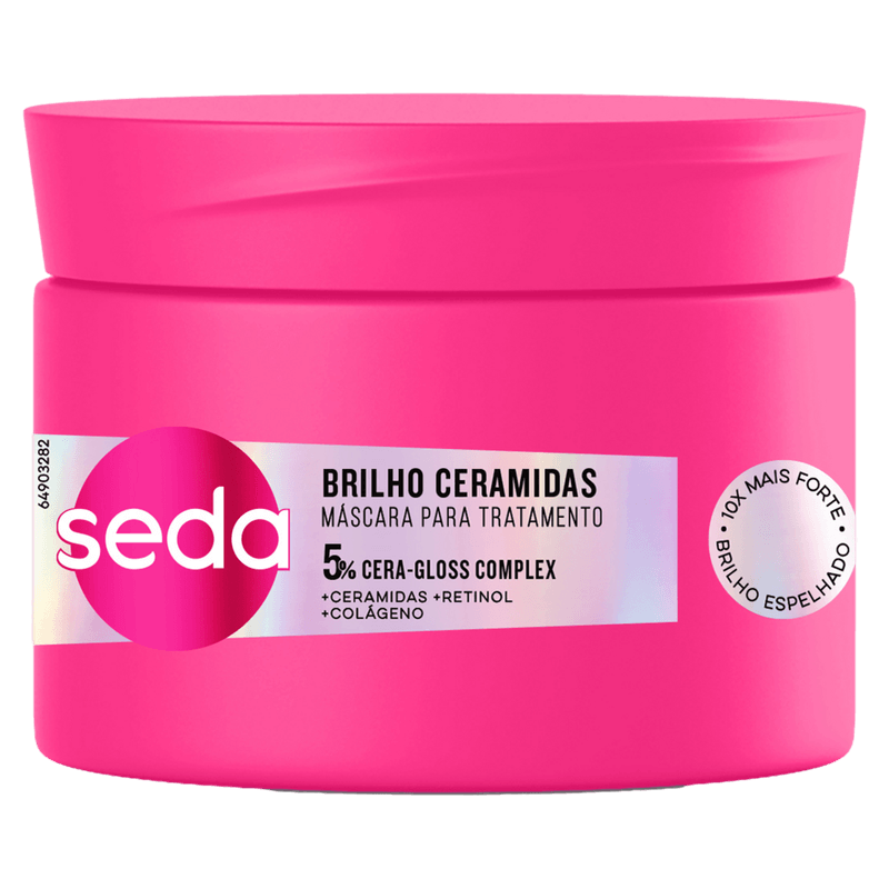 Máscara de tratamento Seda Brilho Ceramidas, desenvolvida para proporcionar brilho intenso e hidratação profunda aos fios. Sua fórmula com ceramidas ajuda a alinhar e selar as cutículas, deixando os cabelos mais fortes, macios e com movimento, ideal para quem deseja fios saudáveis e luminosos.