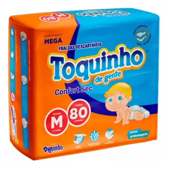 Comprar via WhatsAppTOQUINHO DE GENTE Fralda Confort Sec Mega M – Pacote com 80 unidades